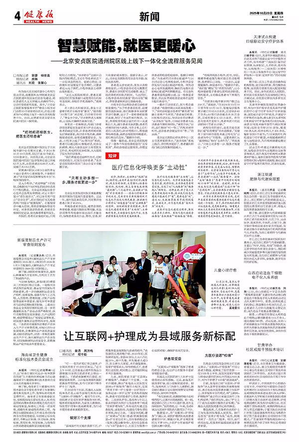 北京安贞医院的探索实践,是近年来国家层面统筹推进医疗信息化建设的一个缩影。当下,医疗机构比拼的不仅是技术,更是服务理念。唯有更主动地立足患者视角优化服务细节,才能让智慧医疗成果惠及更多群众,让群众健康获得感更加持久、更可持续。